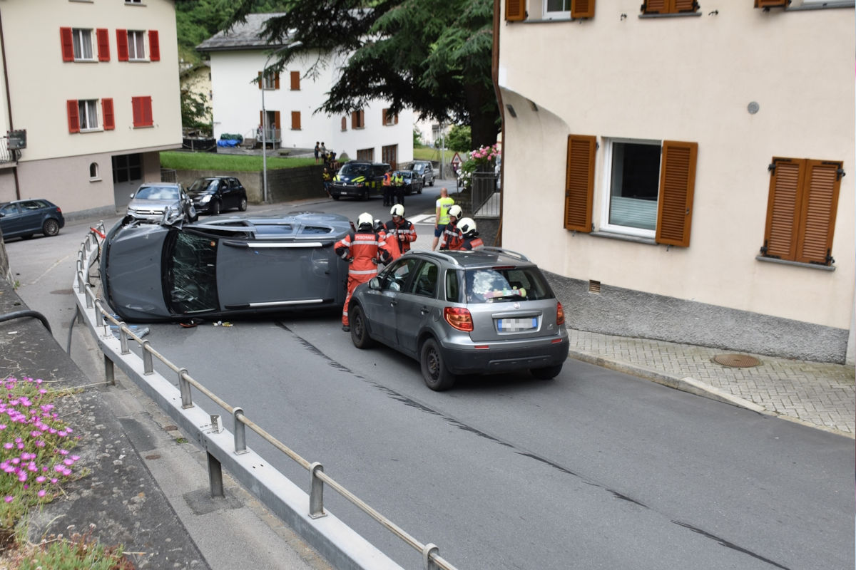 Am Sonntagnachmittag, 15. Juni 2025, kollidierte ein PKW mit einer Leitplanke auf der Hauptstrasse in Brusio. Nach der Kollision kippte das Fahrzeug auf die Seite, der Autolenker wurde dabei leicht verletzt.
