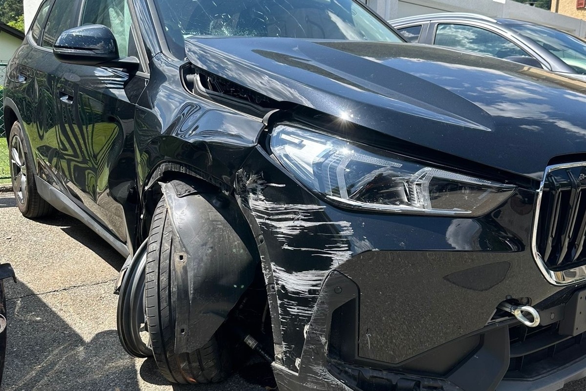 In Brusio GR hat sich ein Unfall ereignet. Der BMW erlitt Totalschaden. (Bildquelle: Kantonspolizei Graubünden)