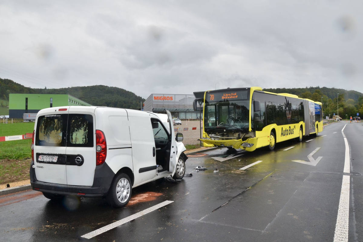 Kollision zwischen Linienbus und Personenwagen (Bildquelle: Kapo BL)