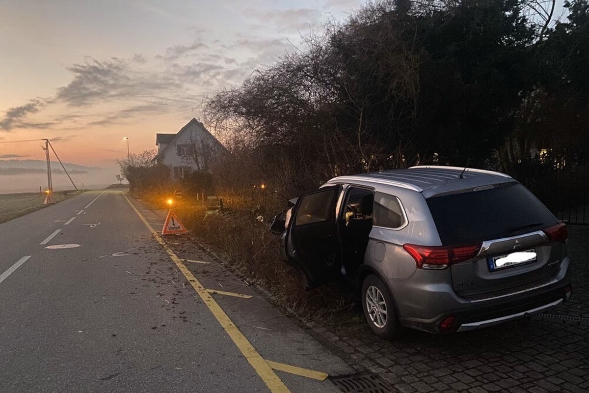 Kurz vor 06:30 Uhr am Sonntagmorgen (18.02.2024) fuhr ein 40-jähriger Deutscher mit einem Auto von Gottmadingen herkommend auf der Steinerstrasse in Richtung Buch. Aufgrund eines Sekundenschlafes kollidierte das Auto kurz nach dem Grenzübergang mit einer Strassenlaterne auf der rechten Strassenseite in einem Gebüsch. Durch den Unfall wurde niemand verletzt.