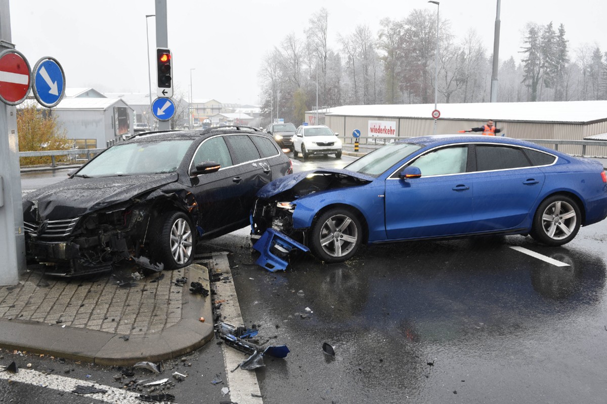 Heftige Kollision an der Ampel in Buchrain LU. (Bildquelle: Luzerner Polizei)
