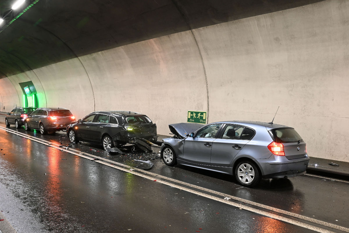 Heute Nachmittag kam es im Autobahnzubringertunnel in Buchrain zu einer Auffahrkollision zwischen vier Autos. Bei dem Unfall erlitten drei Personen Verletzungen und mussten ins Krankenhaus eingeliefert werden. Aufgrund der Sperrung des Zubringertunnels bildete sich ein erheblicher Rückstau auf der Autobahn.
