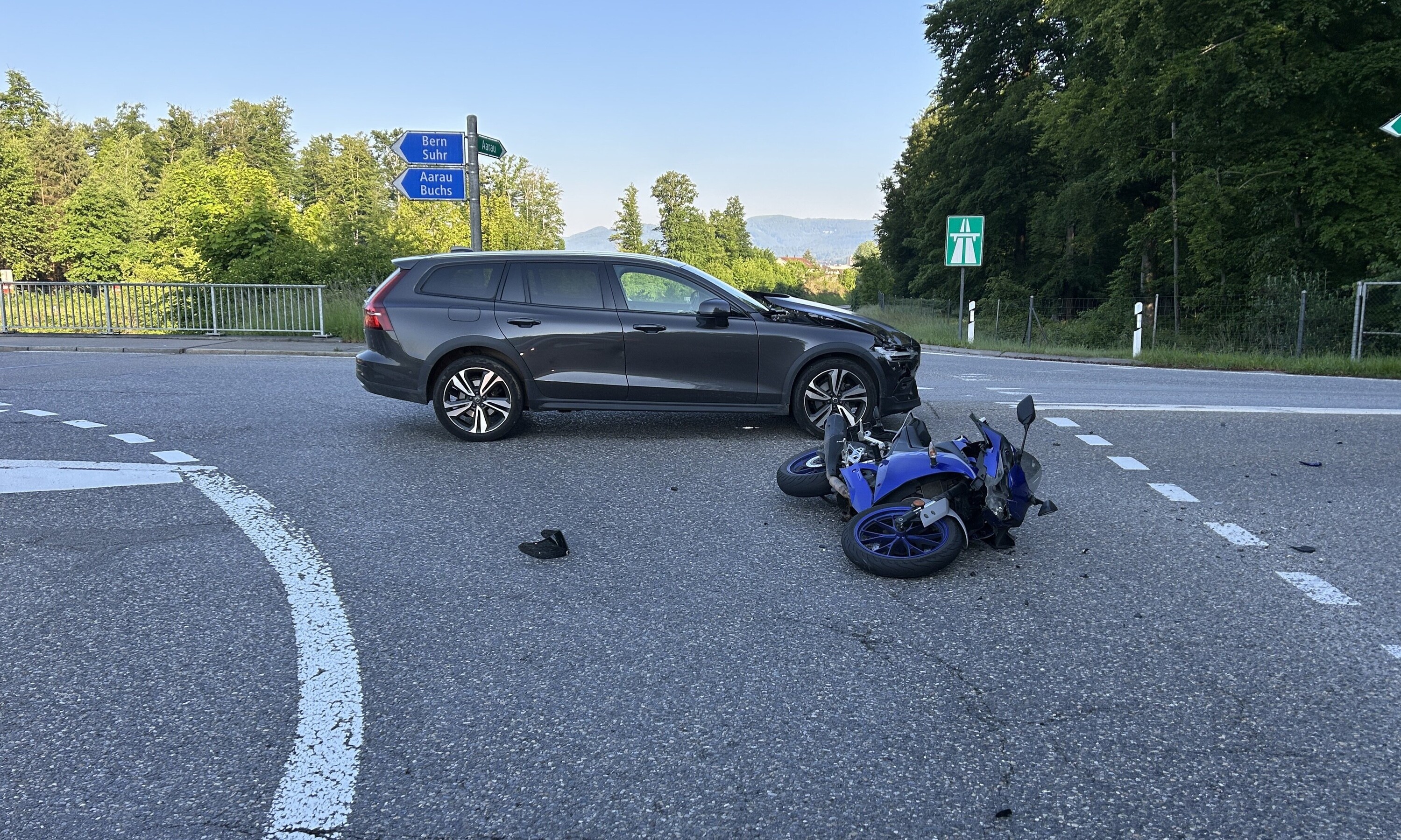 Motorradfahrer bei Kollision verletzt (Bildquelle: Kantonspolizei Aargau)