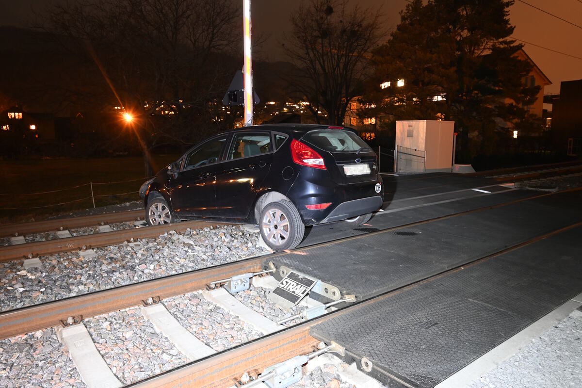 Ein 22-jähriger Mann fuhr mit seinem Auto auf dem Weidweg in Richtung Räfis. Während er den Bahnübergang mit seinem Auto passierte, kam er mit seinem Auto linksseitig von der Fahrbahn ab und das Auto landete auf den Gleisen. Der Fahrer konnte das Auto unverletzt verlassen.