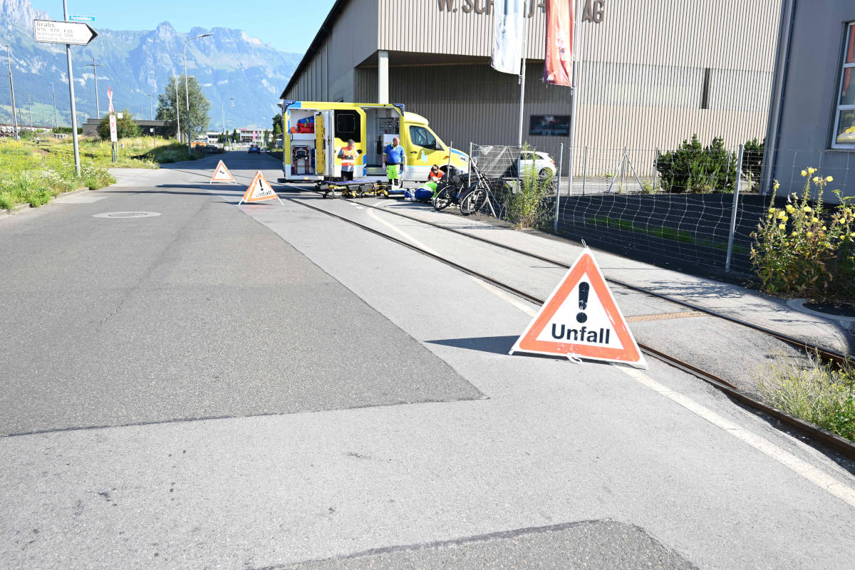 Die 76-jährige und ihr gleichaltriger Ehemann fuhren mit ihren E-Bikes hintereinander in Richtung Fabrikstrasse. Auf Höhe der Verzweigung Fuchsbühlstrasse geriet das Vorderrad des E-Bikes der 76-Jährigen in die Bahngeleise, welche die Fahrbahn queren. Daraufhin stürzte die Frau zu Boden und verletzte sich unbestimmt. Sie musste anschliessend vom Rettungsdienst betreut und ins Spital gebracht werden. Am E-Bike der Frau entstand geringer Sachschaden.