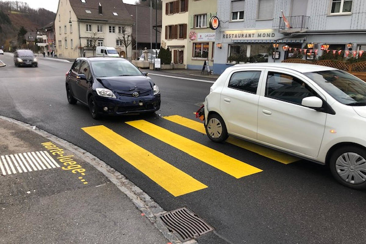 Am Freitagnachmittag, 29. Januar 2021, kurz vor 16.00 Uhr, ereignete sich vor einem Fussgängerstreifen in der Hauptstrasse in Buckten BL eine Auffahrkollision zwischen zwei Personenwagen. Zwei Personen wurden dabei leicht verletzt.
