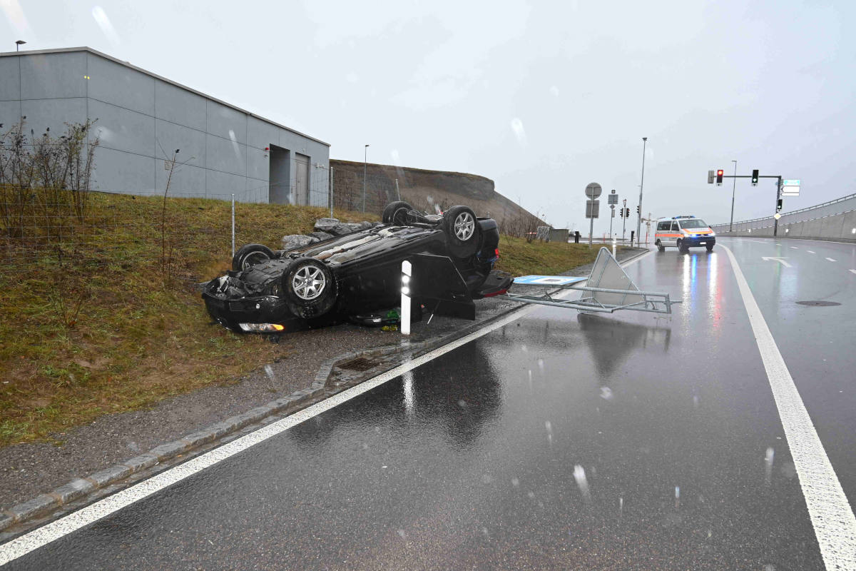 Am Samstag (04.12.2021), kurz vor 14:45 Uhr, hat ein 73-jähriger Autofahrer auf der Umfahrungsstrasse H16 einen Selbstunfall verursacht. Er wurde dabei leicht verletzt.