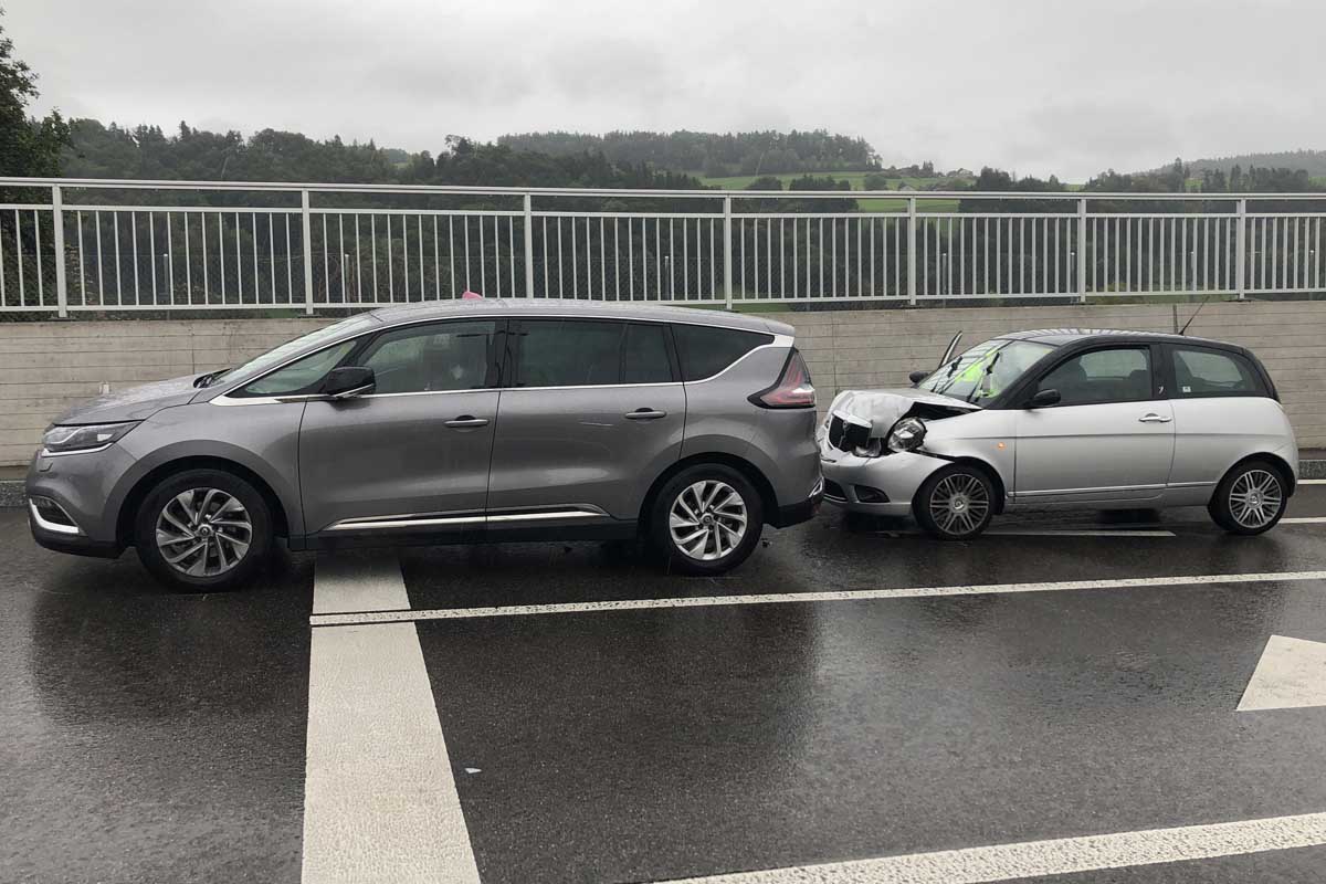 Hinter ihr fuhr ein 26-jähriger Mann mit seinem Auto und einer Mitfahrenden in dieselbe Richtung. Bei einem Lichtsignal nach dem Tunnel Engi, Höhe Verzweigung Wilerstrasse, musste die 42-Jährige ihr Auto aufgrund einer Rotlichtphase bis zum Stillstand abbremsen. Der 26-Jährige bemerkte dies zu spät.
