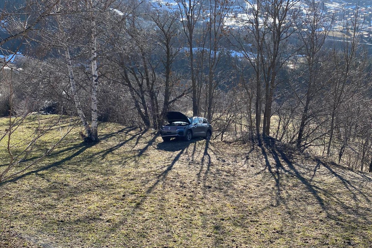 Meter unterhalb der Strasse an einer Baumgruppe zum Stillstand. Der Lenker wurde