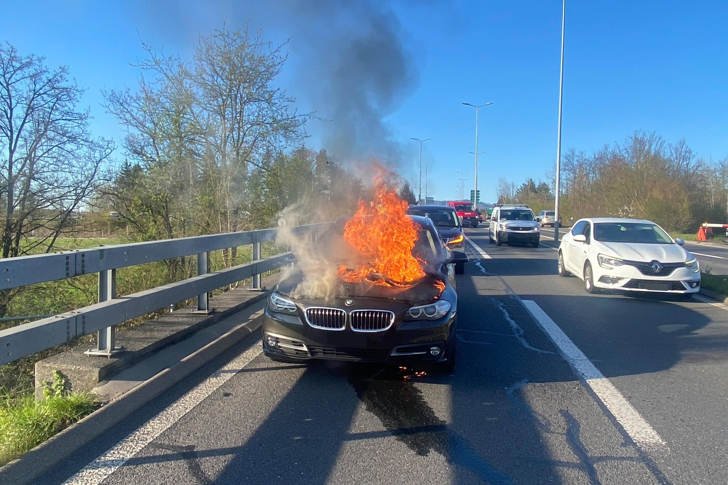 Am Freitagabend kam es auf der A14 bei Cham zu einem Fahrzeugbrand, nachdem ein Knall im Motorbereich ertönte.