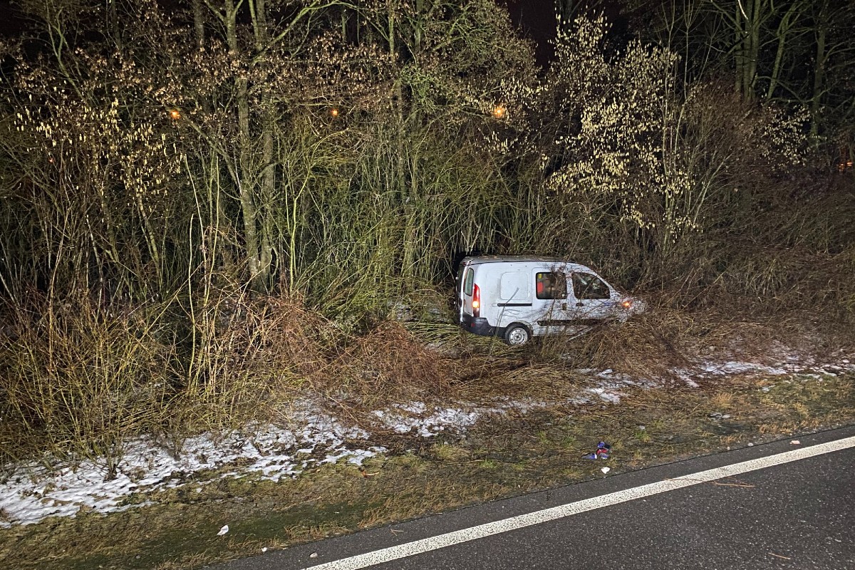 Ein Lieferwagenlenker entfernte sich während einer Polizeikontrolle von der Kontrollstelle und verunfallte wenig später. Verletzt wurde niemand. Der Lenker war allerdings nicht fahrfähig und hatte keine Fahrberechtigung.