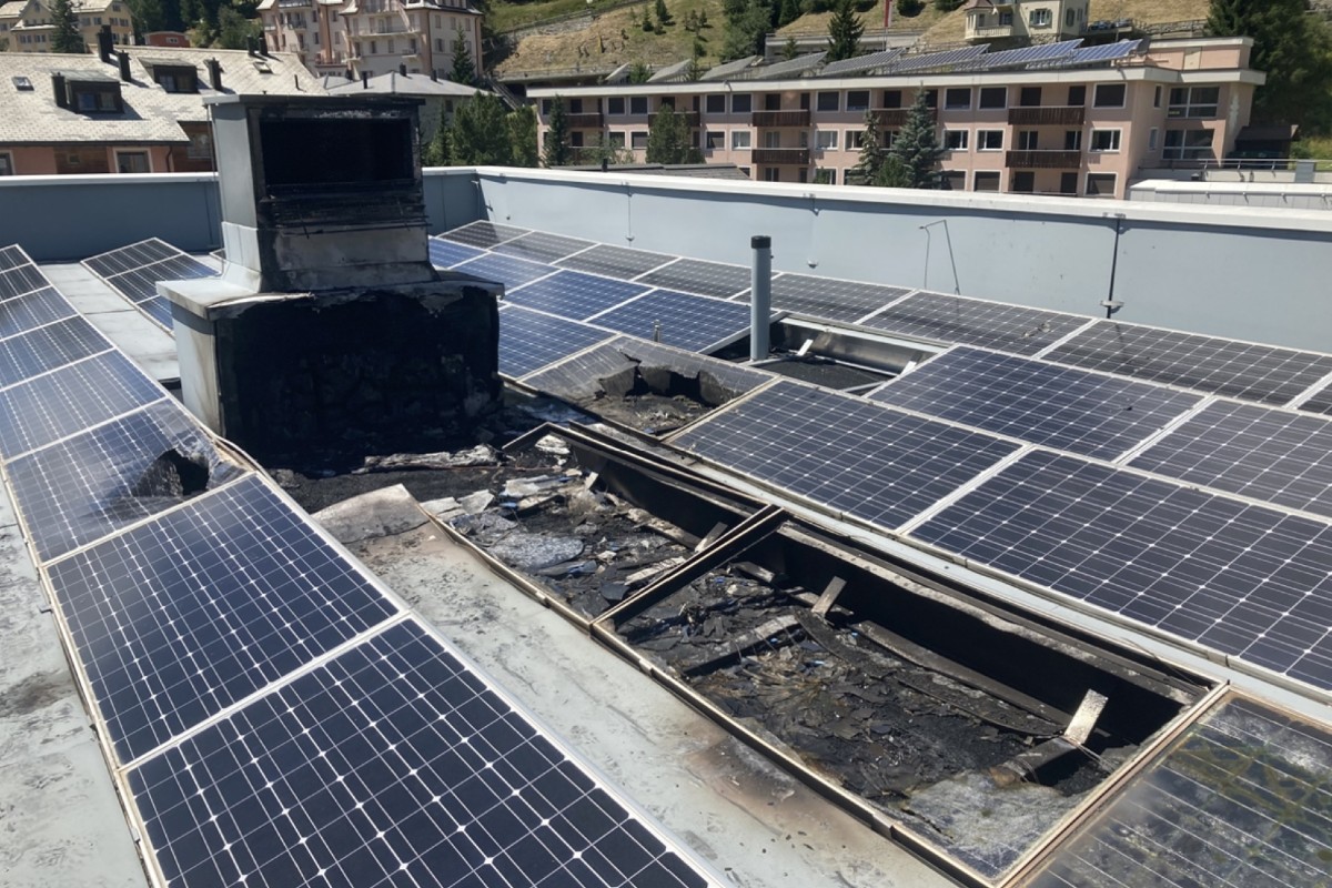 Um 12.35 Uhr ging bei der Einsatzleitzentrale der Kantonspolizei Graubünden die Meldung ein, wonach in Champfèr an einem Mehrfamilienhaus Rauch und Flammen zu sehen seien. Die Einsatzkräfte des Feuerwehrstützpunktes St. Moritz stellten auf dem Flachdach des mehrstöckigen Hauses den Brand fest. Die einzige, sich im Hausparterre befindliche Bewohnerin, konnte sich noch vor dem Eintreffen der Einsatzkräfte selbständig in Sicherheit bringen und blieb unverletzt. Die Feuerwehr hatte den Brand rasch unter Kontrolle und konnte das Feuer löschen.