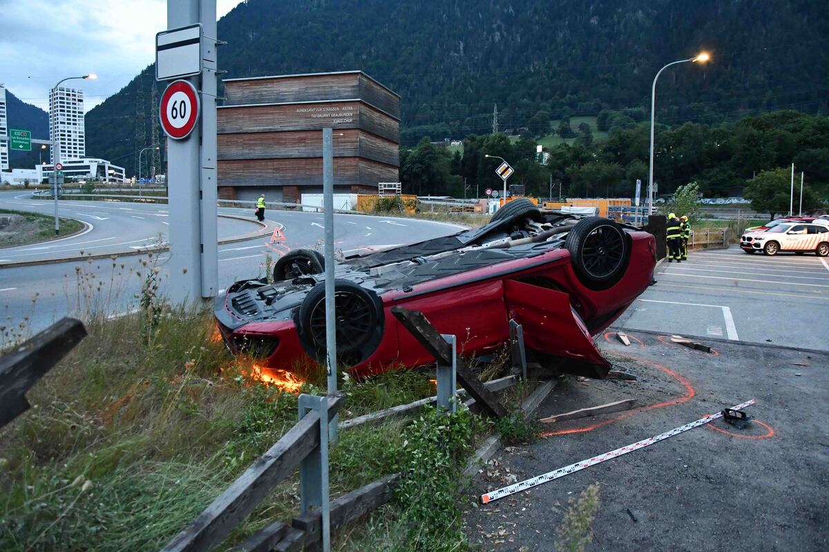 Am Samstagabend (17.08.2024) um 19:15 Uhr, fuhr ein 39-jähriger Autofahrer von Landquart kommend über die Autobahn A13 nach Chur. Bei der Ausfahrt Chur Süd verliess er die Autobahn und fuhr Richtung Sommeraustrasse. Bei der folgenden Rechtskurve geriet er ins Schleudern und überquerte die Gegenfahrbahn. Daraufhin überschlug sich das Auto und kam auf dem Parkplatz der Spundisstrasse auf dem Dach zum Erliegen.