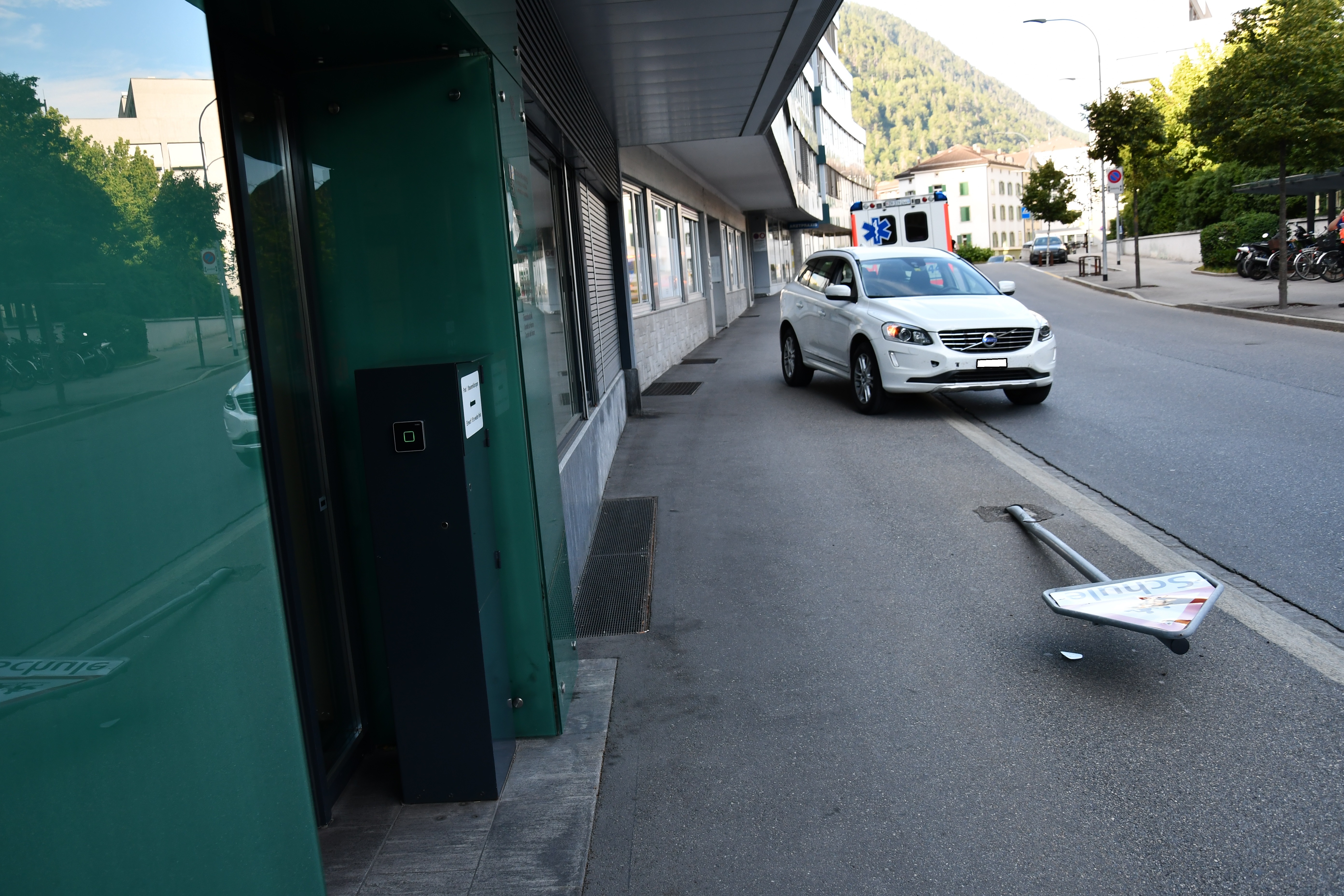 Autolenker fährt in Chur GR in Signaltafel- (Bildquelle: Stadtpolizei Chur)