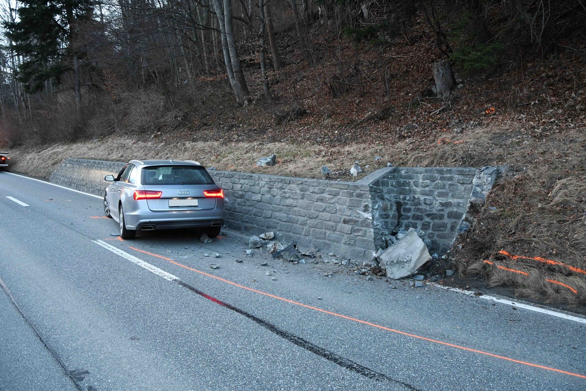 Gründen, prallte das Auto rechtsseitig gegen eine Stützmauer und kam kurz danach zum