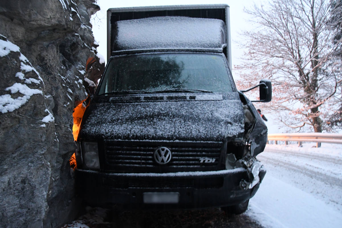 Ein Lieferwagen fuhr über die Arosastrasse in Richtung Chur. Zeitgleich fuhr ein Personenwagen in die entgegengesetzte Richtung. Auf der Höhe der Kanzel kam der talwärts fahrende Lieferwagen ins Rutschen und kollidierte zuerst seitlich mit dem entgegenkommenden Personenwagen und im Anschluss mit der bergseitigen Felswand. An beiden Fahrzeugen entstand erheblicher Sachschaden und der Lenker des Personenwagens zog sich leichte Verletzungen zu.