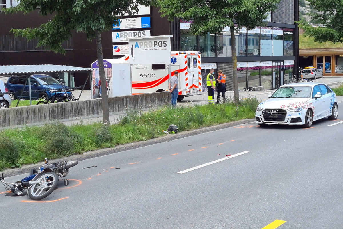 Frontalkollision zwischen Mofa und Audi in Chur (Bildquelle: Stadtpolizei Chur)