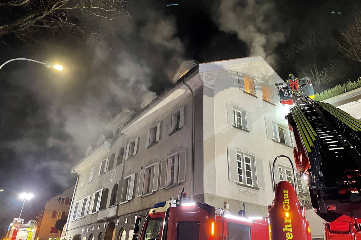 Die Meldung über den Brand erreichte die Einsatzleitzentrale der Kantonspolizei Graubünden am Donnerstag gegen 02.45 Uhr. Die mit 25 Einsatzkräften rasch am Einsatzort angelangte Feuerwehr Chur nahm sofort die Bekämpfung des Brandes in Angriff. Drei Personen mussten durch die Feuerwehr von Balkonen gerettet werden. Einsatzkräfte der Stadtpolizei Chur evakuierten die übrigen Hausbewohnenden aus dem Mehrfamilienhaus und gaben diesen Logis im Aufenthaltsraum des Stadtpolizeigebäudes. Ein Ambulanzteam der Rettung Chur überprüfte drei Personen auf Verdacht einer Rauchvergiftung. Eine dieser Personen musste zu weiteren medizinischen Abklärungen ins Kantonsspital Graubünden gebracht werden.