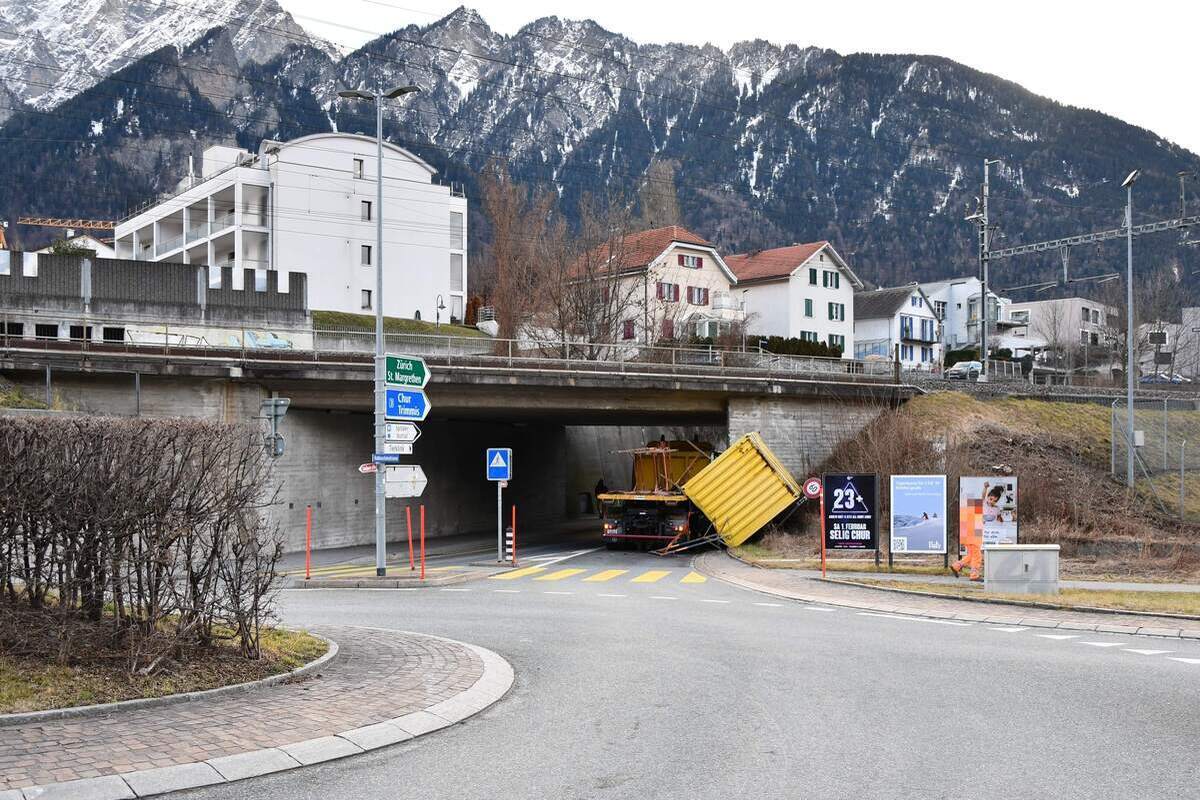 Am Montagvormittag (27.01.2025), um ca. 08:10 Uhr, fuhr ein Lastwagenchauffeur von Reichenau herkommend, auf der Autobahn Richtung Norden und verliess diese bei der Ausfahrt Chur Nord. Der Lastwagenchauffeur beabsichtigte sein Fahrzeug, welches mit einem Container beladen war, in Richtung Masanserstrasse zu lenken.