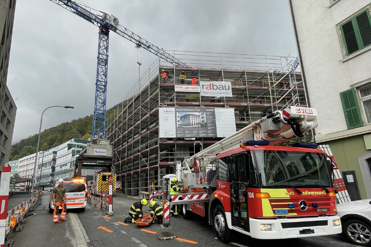 In Chur hat sich am Dienstagnachmittag ein Arbeitsunfall auf der Baustelle eines Neubaus ereignet. Ein Arbeiter stürzte auf eine Bodenplatte und verletzte sich dabei.