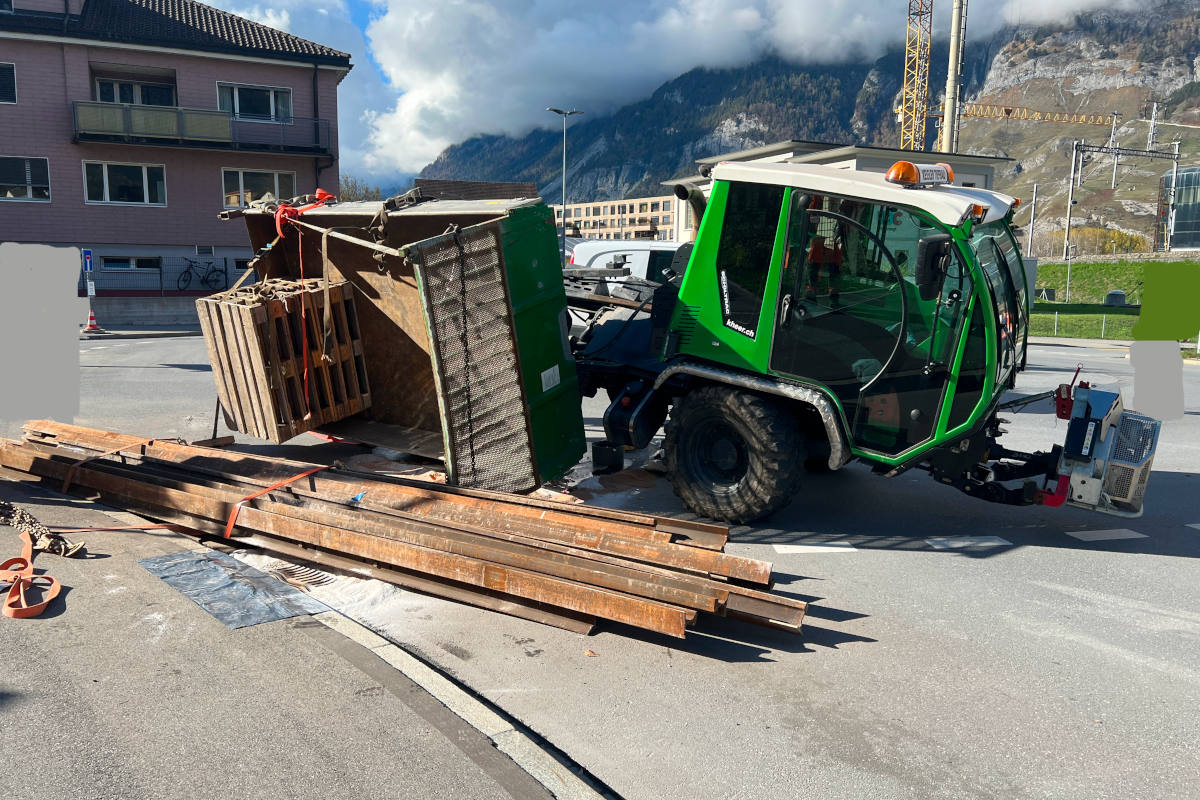 Am Freitag (04.11.2022) 12:15 Uhr, ist es im Kreisel Ring-/Salvatorenstrasse zu einem Selbstunfall mit einem Motorkarren gekommen. Dabei kippte das Fahrzeug und verlor die Ladung