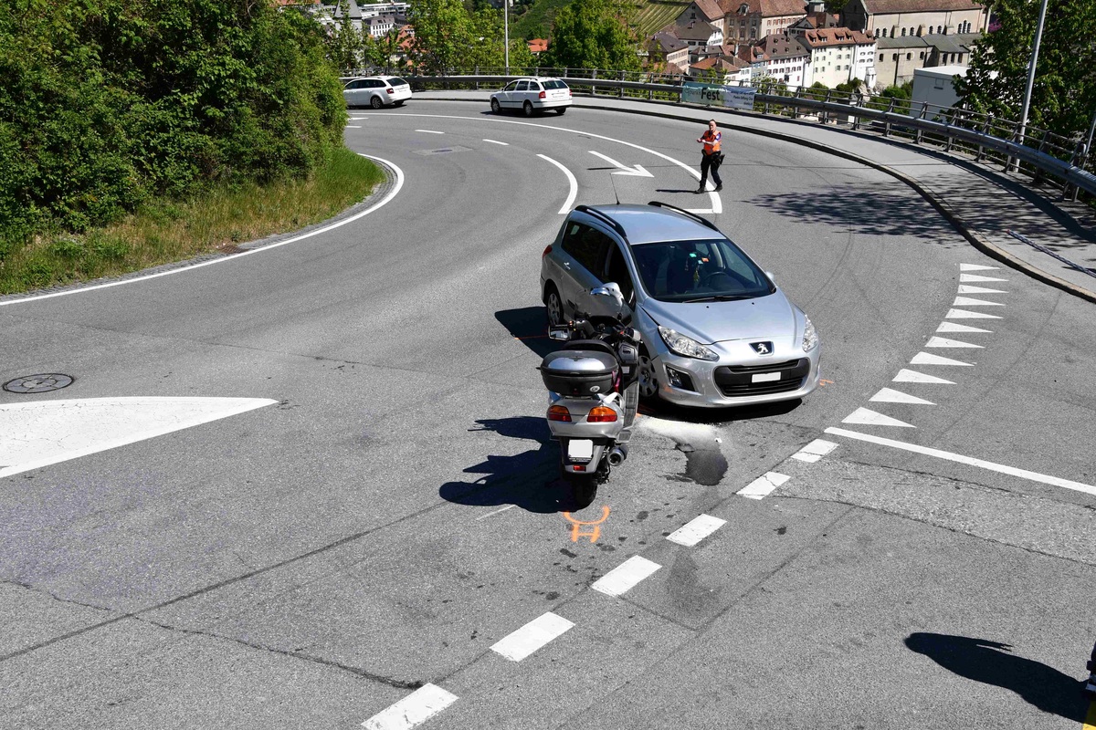 In Chur kam es zu einer Kollision zwischen einem Auto und einem Motorrad. Der verletzte Motorradfahrer musste ins Spital gebracht werden.