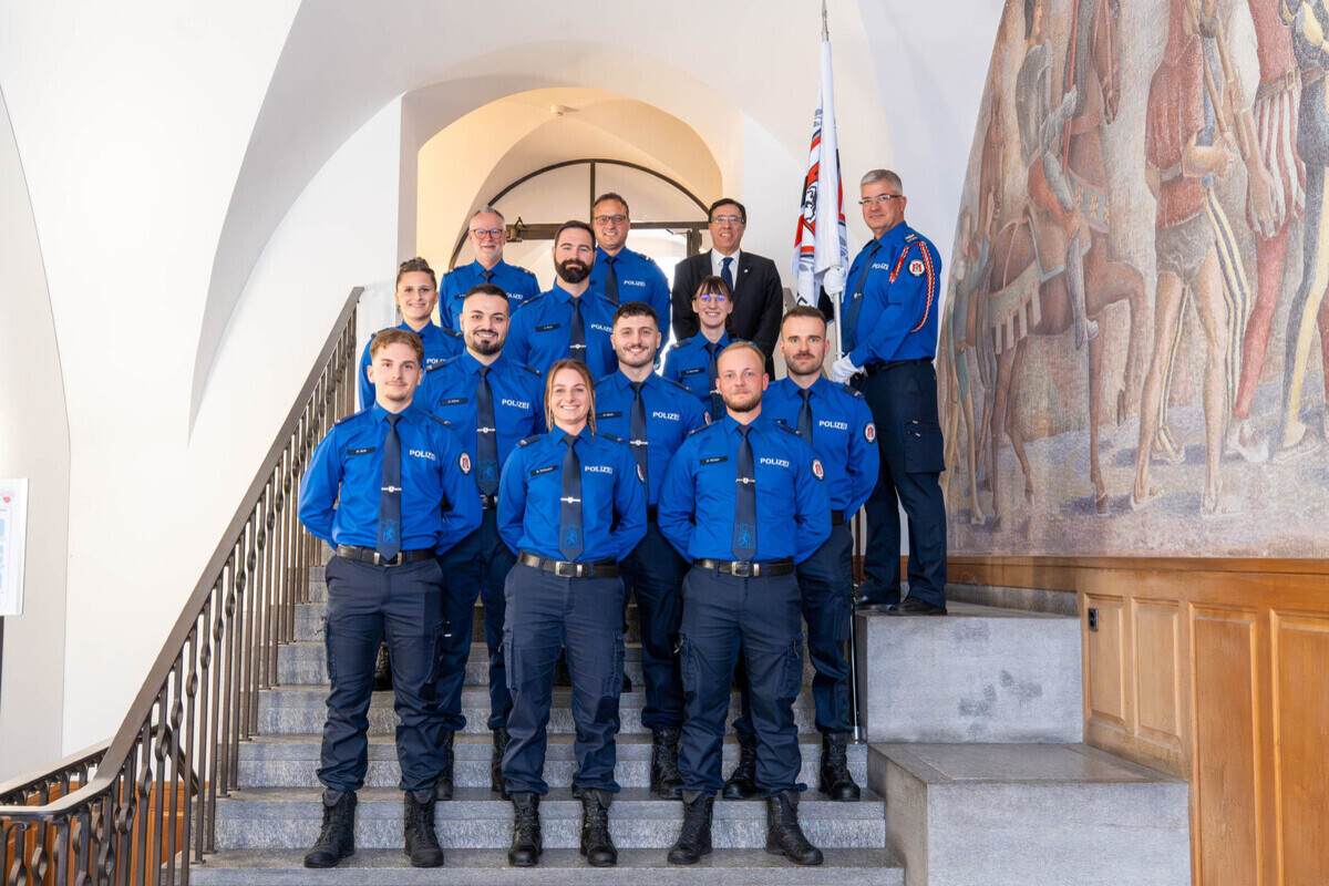 Im Churer Rathaus sind am Mittwoch drei Polizeiaspirantinnen und -aspiranten feierlich in Pflicht genommen und sechs Absolventinnen und Absolventen nach bestandener Berufsprüfung vereidigt worden.