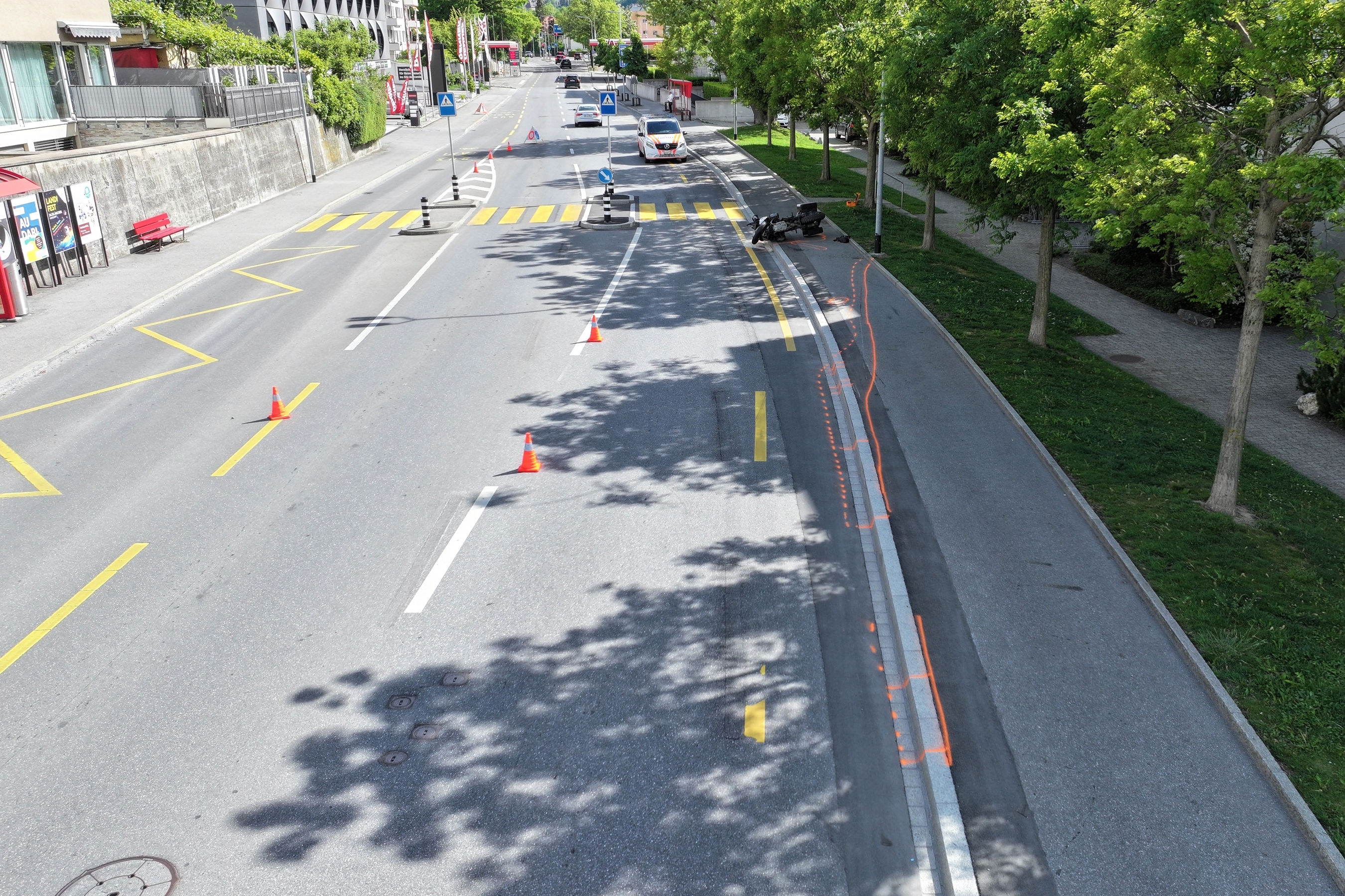 Graubünden überführt. Am Motorrad und dem Kandelaber entstand