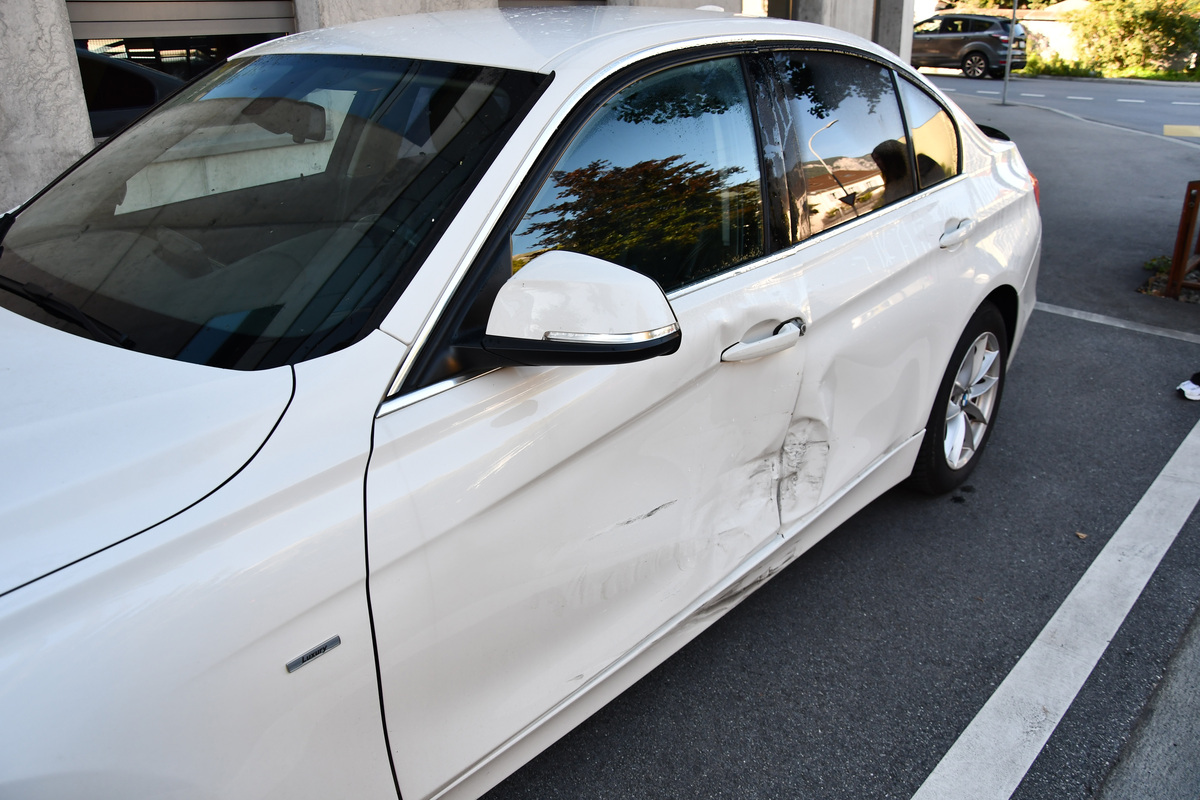 Am weissen Auto entstand deutlicher Sachschaden (Bildquelle: Stadtpolizei Chur)