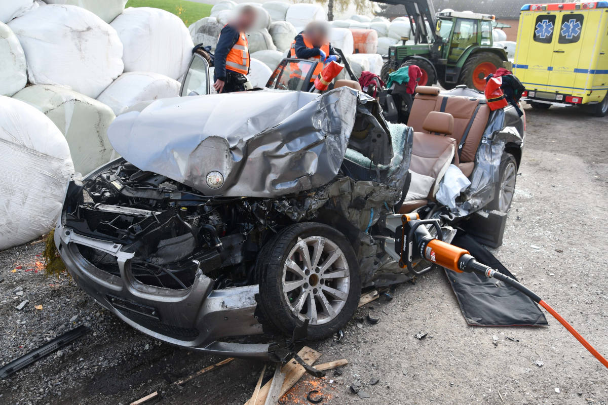 Eine 81-jährige Automobilistin und ihr 98-jähriger Ehemann fuhren mit ihrem Personenwagen über die Waisenhausstrasse in Richtung Trimmis. Auf der Höhe eines Bauernhofes kollidierte sie mit einem Futtersilo. Bei der Kollision wurden beide Fahrzeuginsassen verletzt, der Beifahrer schwer. Aufgrund der starken Beschädigungen am Fahrzeug mussten beide Personen durch die Strassenrettung der Feuerwehr Chur aus dem Auto befreit werden.