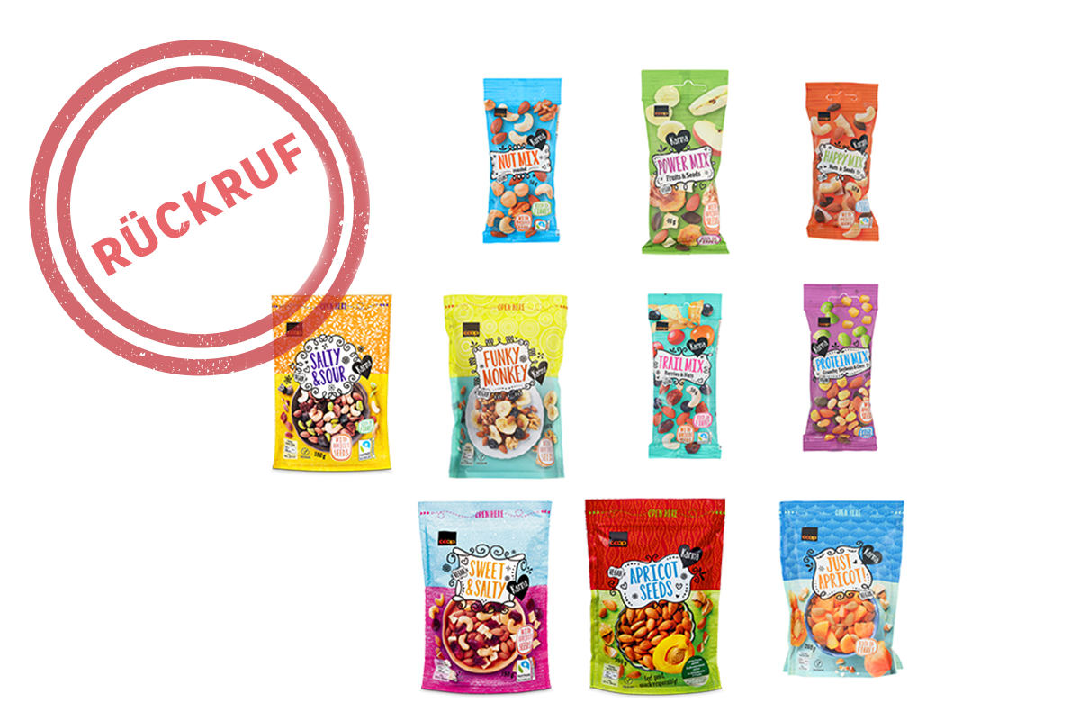 Coop ruft vorsorglich Karma Aprikosenkernen-Produkte zurück. Es besteht ein erhöhter Gehalt an Aflatoxinen und damit eine potenzielle Gesundheitsgefährdung. Es wird empfohlen, diese Produkte nicht zu konsumieren.