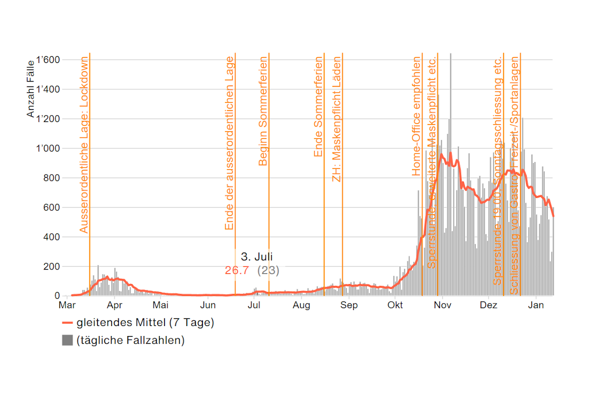 Entwicklung der kantonalen Fallzahlen. (Bildquelle: Kanton Zürich)