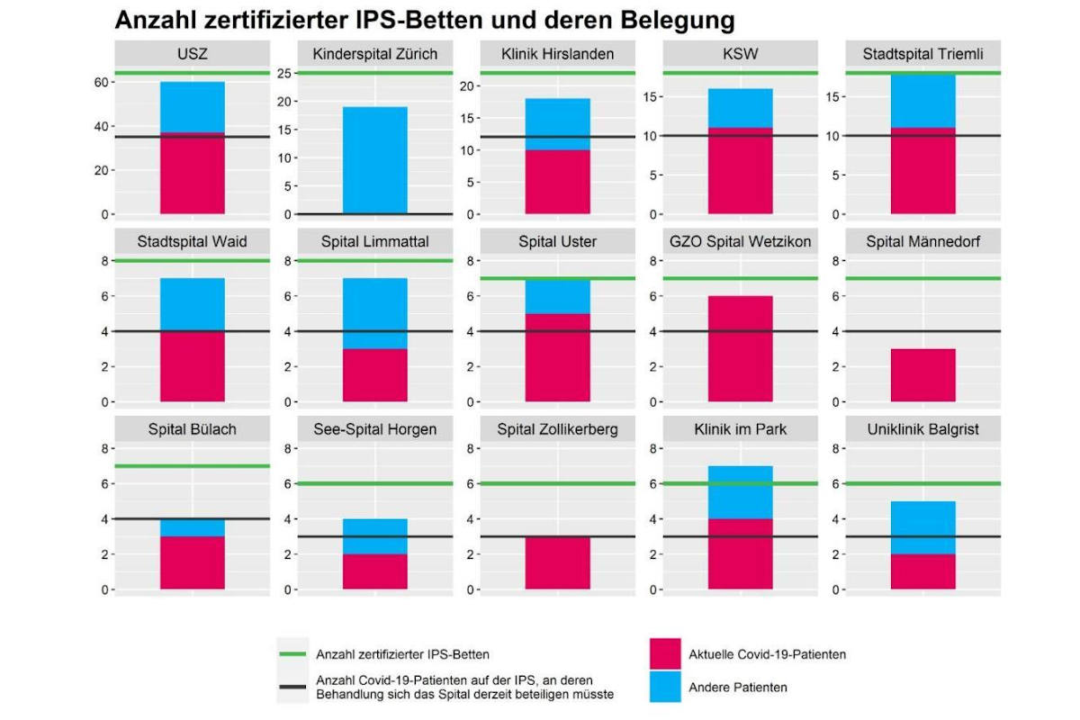 Anzahl zertifizierter IPS-Betten und deren Belegung (Bildquelle: Kanton Zürich)