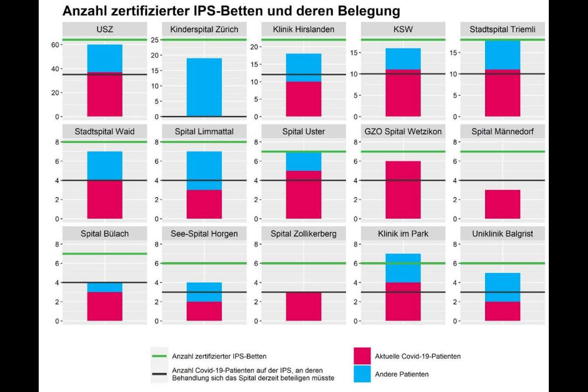 Anzahl zertifizierter IPS-Betten und deren Belegung (Bildquelle: Kanton Zürich)