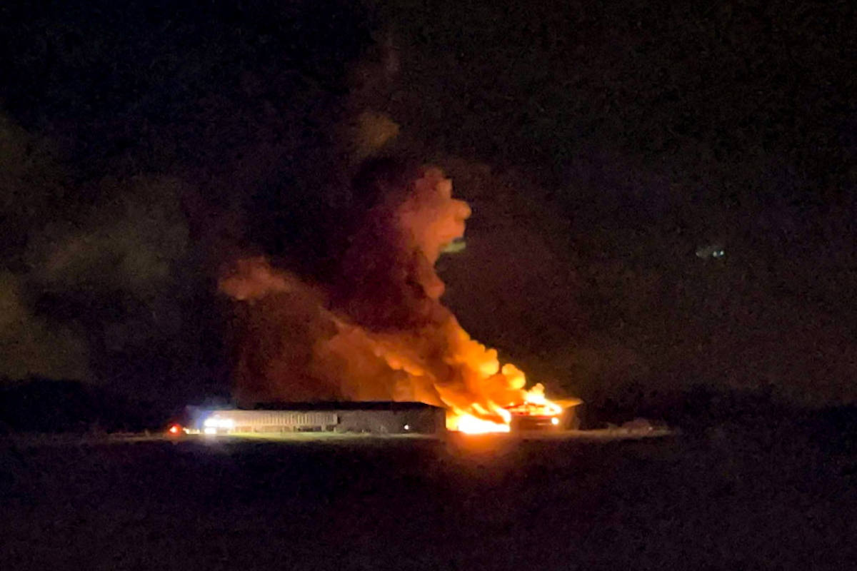 Eine landwirtschaftliche Halle in Cournillens wird durch einen Brand zerstört (Bildquelle: Kantonspolizei Freiburg)