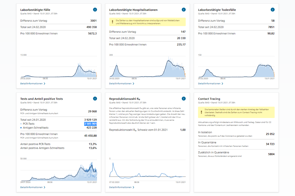 Lage in der Schweiz am 13.01.2021 (Bildquelle: BAG)