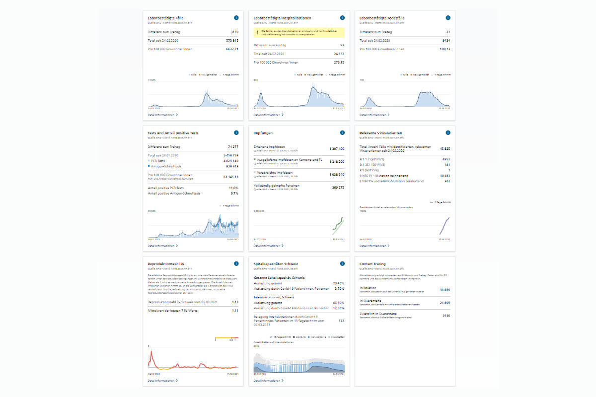 Aktuelle Corona-Zahlen aus der Schweiz vom 15.03.2021 (Bildquelle: BAG)