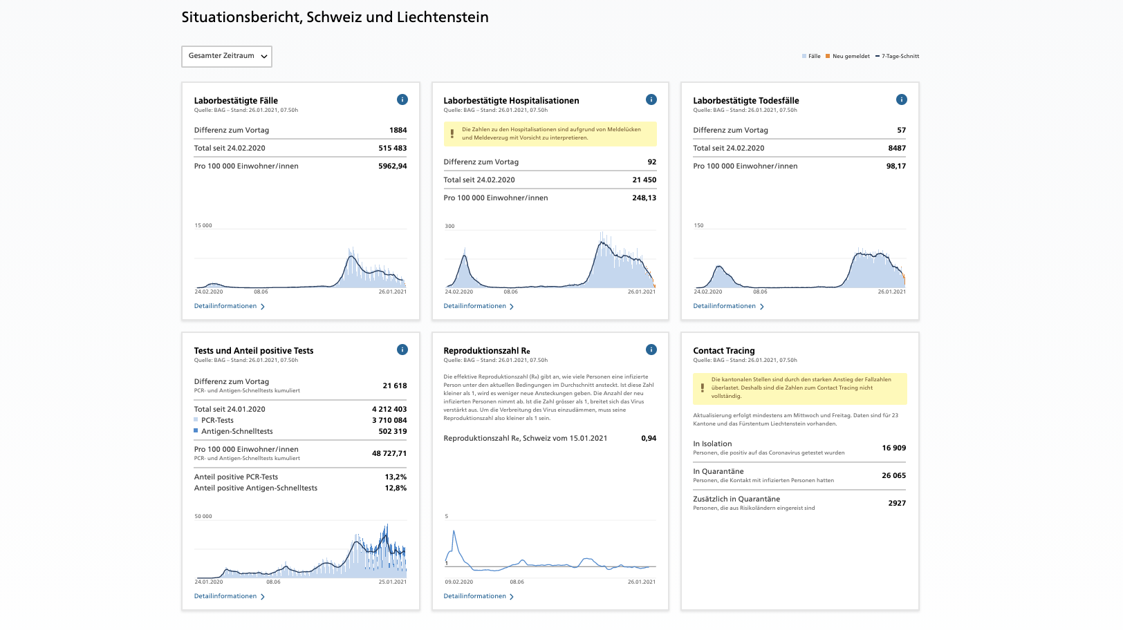 Das ist der tägliche Situationsbericht zur Lage in der Schweiz und im Fürstentum Liechtenstein. Veränderungen aus den letzten 24 Stunden.