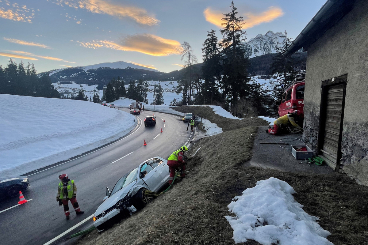 Der talwärts fahrende Automobilist wurde mittelschwer verletzt und mit der Rettung Mittelbünden ins Spital nach Thusis gebracht. Sein Auto musste in der steilen Böschung durch Einsatzkräfte der Strassenrettung der Stützpunkt-Feuerwehr Surses gegen ein Überschlagen gesichert werden. Die Kantonspolizei Graubünden klärt die Ursache dieser Kollision ab.