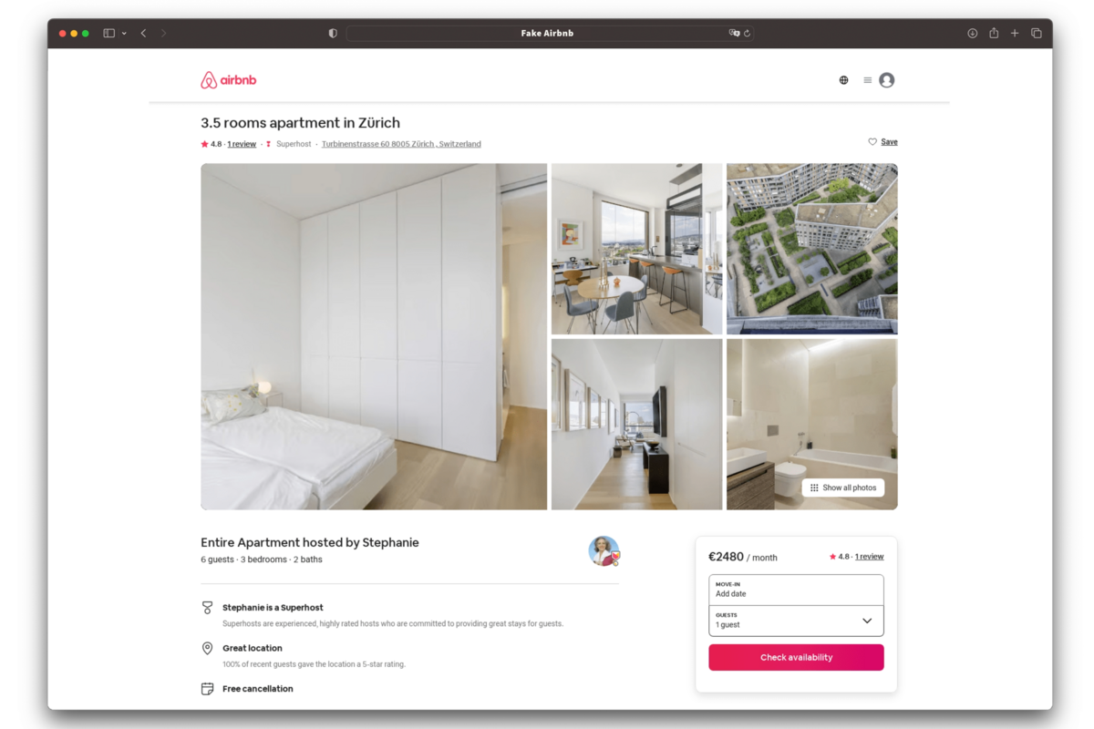 Viele Personen suchen dringend nach einer Wohnung. Betrüger nutzen diese Situation aus und locken mit falschen Inseraten für attraktive und günstige Immobilien. Um das angebliche Mietverhältnis zu beginnen, müssen die Betroffenen eine Buchung auf einer gefälschten Airbnb-Plattform vornehmen.