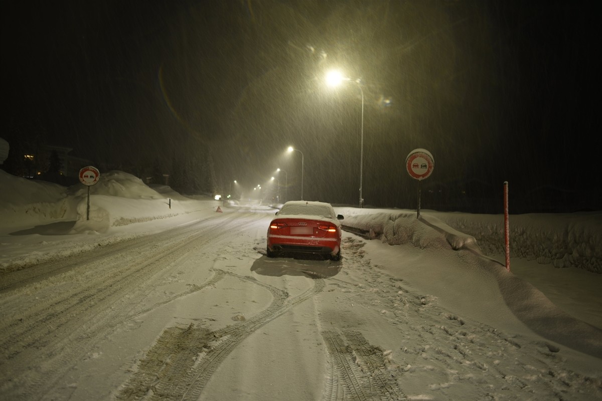 In Davos rutschte ein Personenwagen auf der schneebedeckten Strasse in eine Fussgängerin (Bildquelle: Kantonspolizei Graubünden)