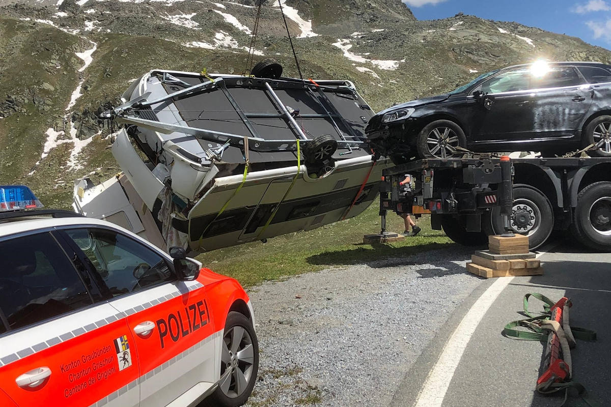Bergung des Wohnwagens (Bildquelle: Kantonspolizei Graubünden)