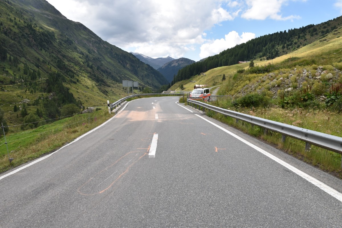 Hinter dem Auto fuhren drei Motorräder mit österreichischen Kontrollschildern ebenfalls in dieselbe Richtung. Im Bereich der örtlichen Bezeichnung Tschuggen überholte der erste Motorradlenker das Auto gefolgt von den beiden anderen Motorradlenkern. Nach Beendigung des Überholmanövers kam der vorderste Töfffahrer aus noch unbekannten Gründen ins Schleudern und kam zu Fall. In der Folge konnte der direkt hinter diesem fahrenden zweiten Motorradlenker nicht rechtzeitig bremsen und stürzte ebenfalls. Der letzte Motorradlenker der Gruppe erkannte die Situation und versuchte auszuweichen. Durch dieses Ausweichmanöver kam er zu Fall und dabei kollidierte sein Motorrad mit dem stillstehenden Personenwagen auf der rechten Fahrbahnseite.