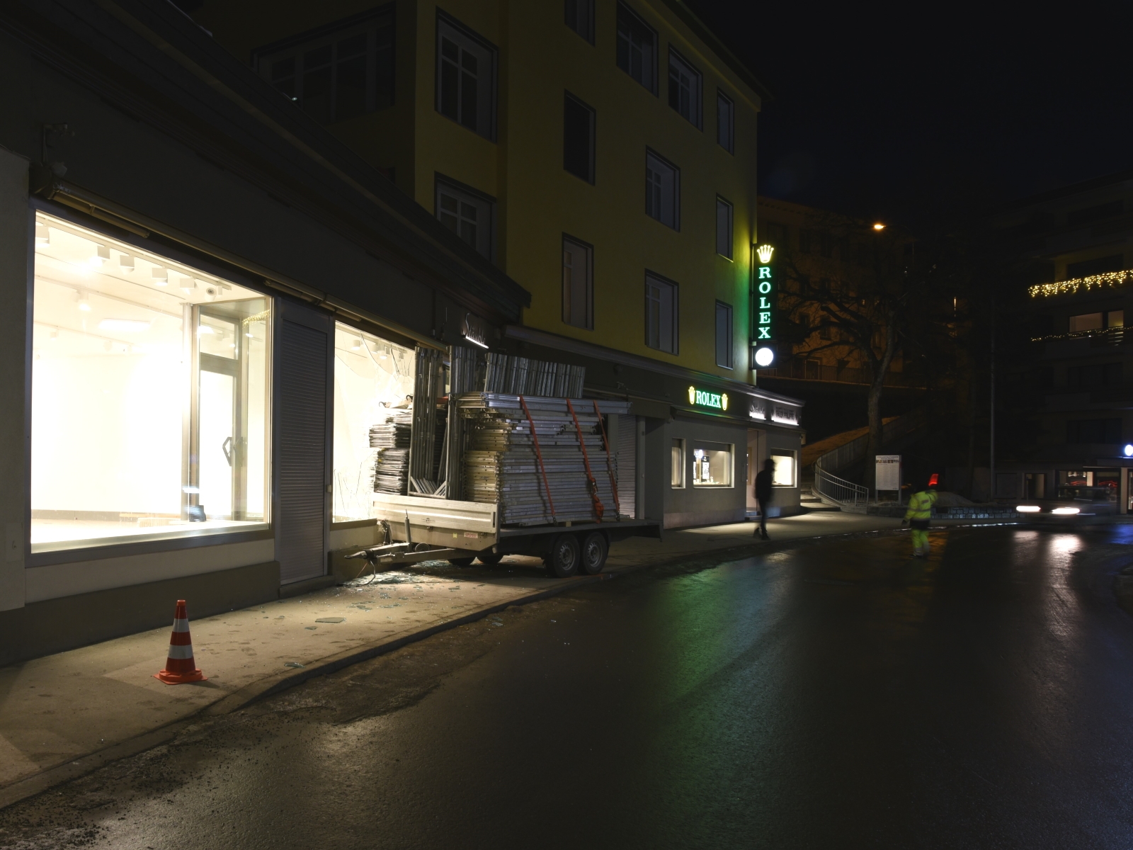 Am Mittwoch hat sich auf der Promenade in Davos Platz ein Anhänger von einem Lieferwagen gelöst. Er überquerte ein Trottoir und kollidierte mit einer Hausfassade.