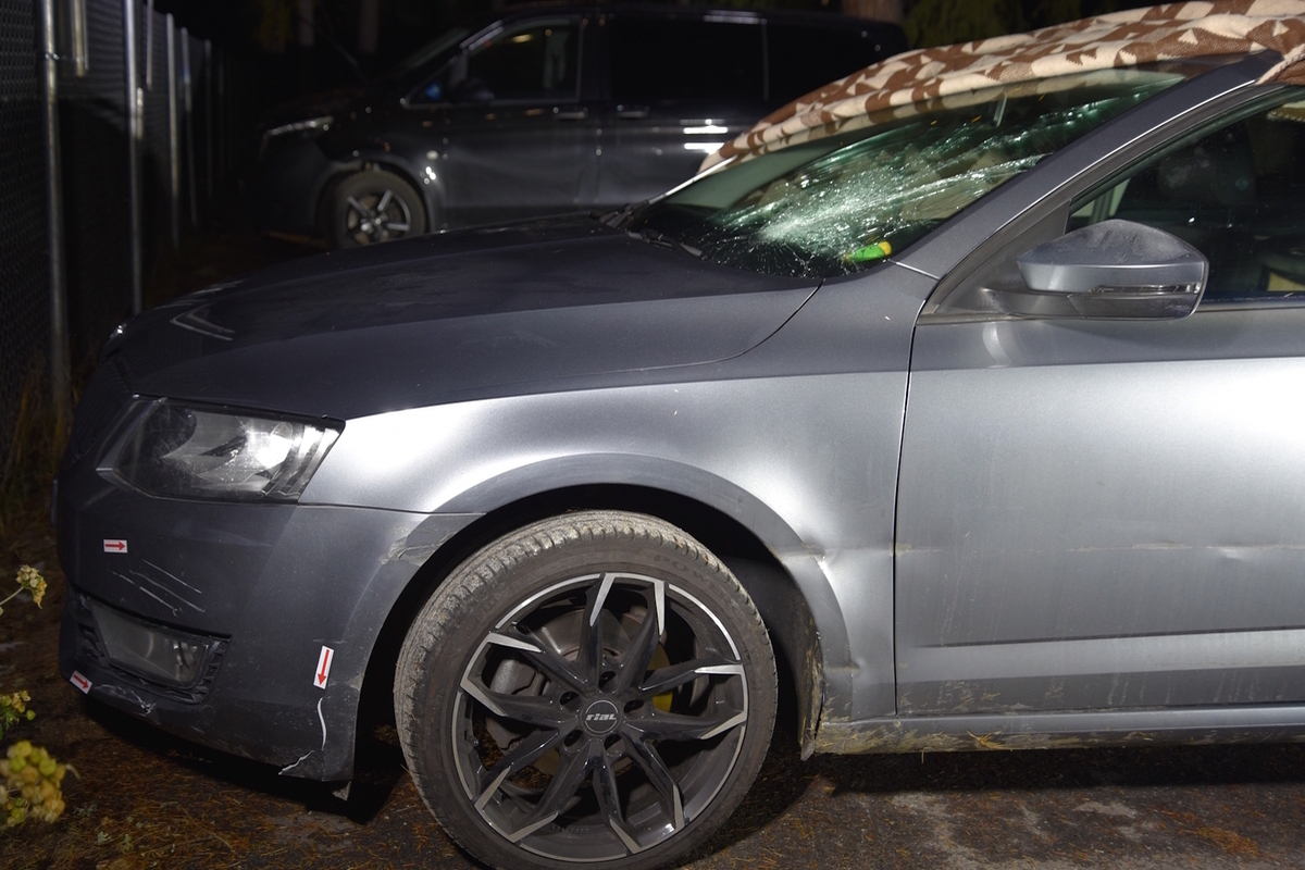 Auch das Auto wurde bei dem Unfall beschädigt (Bildquelle: Kantonspolizei Graubünden)