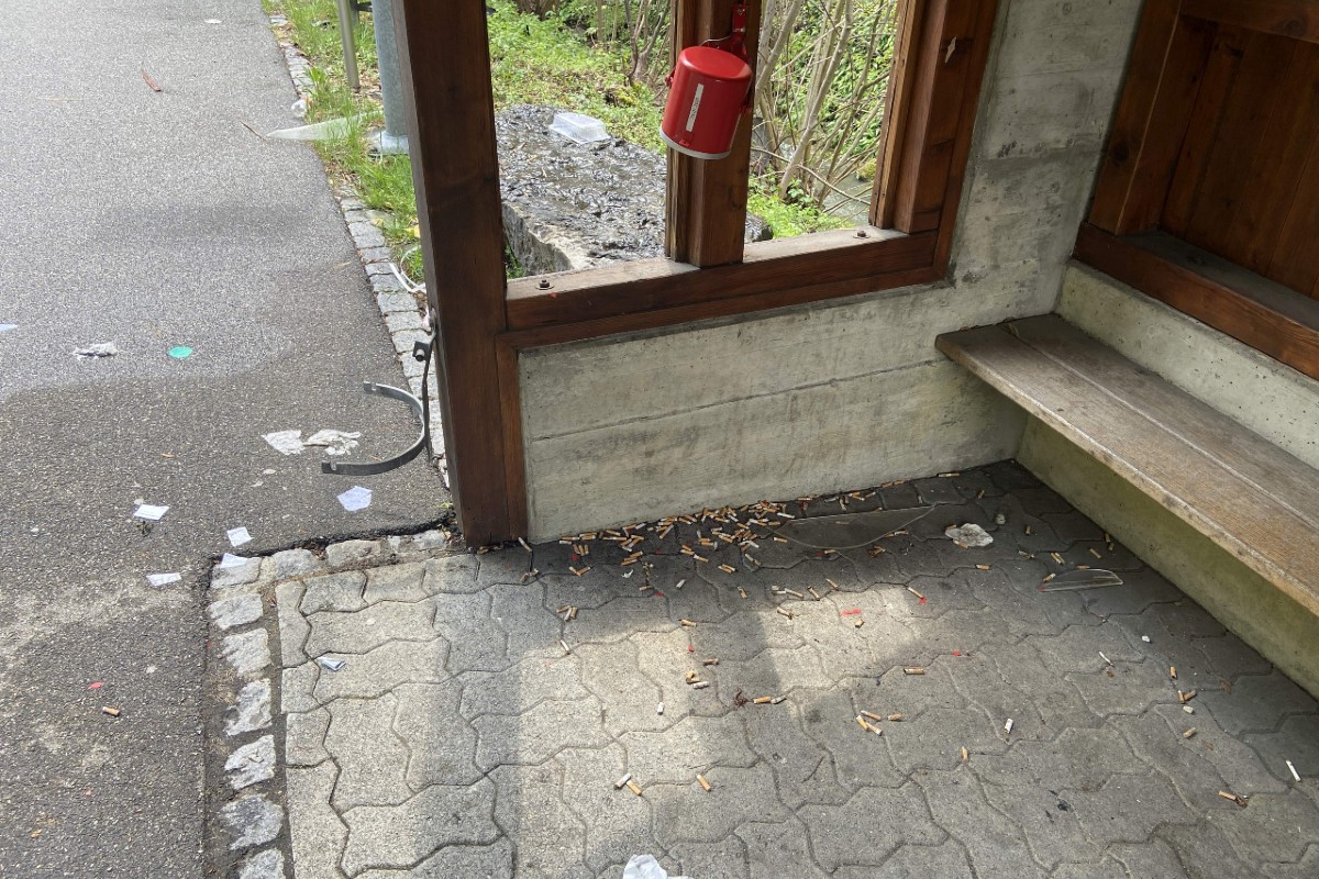 In Densbüren AG wurde eine Bushaltestelle verwüstet. (Bildquelle: Kantonspolizei Aargau)
