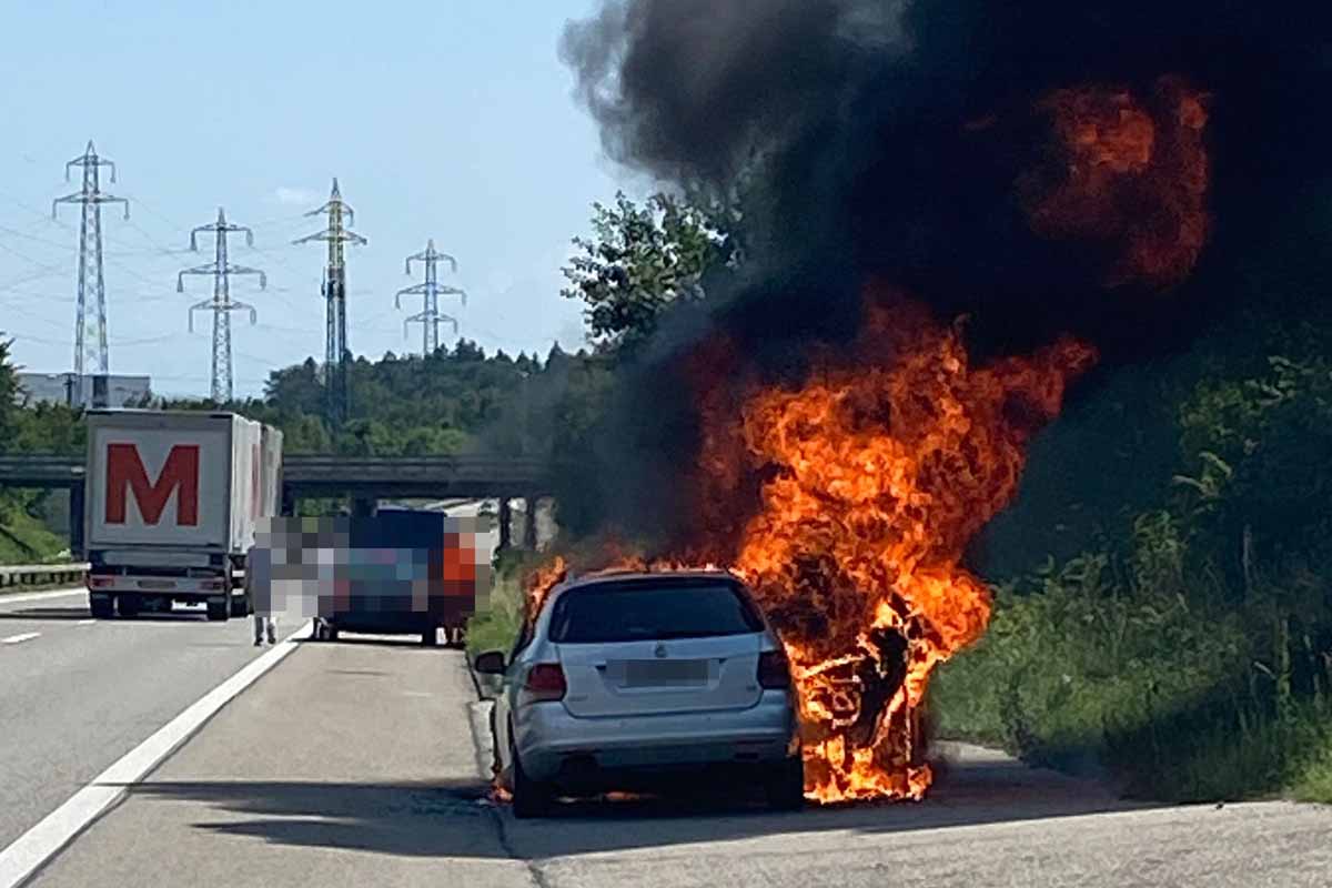 Auf der Autobahn A1 bei Derendingen in Fahrtrichtung Bern ist am Montagnachmittag ein Auto aus noch zu klärenden Gründen vollständig ausgebrannt. Verletzt wurde niemand.