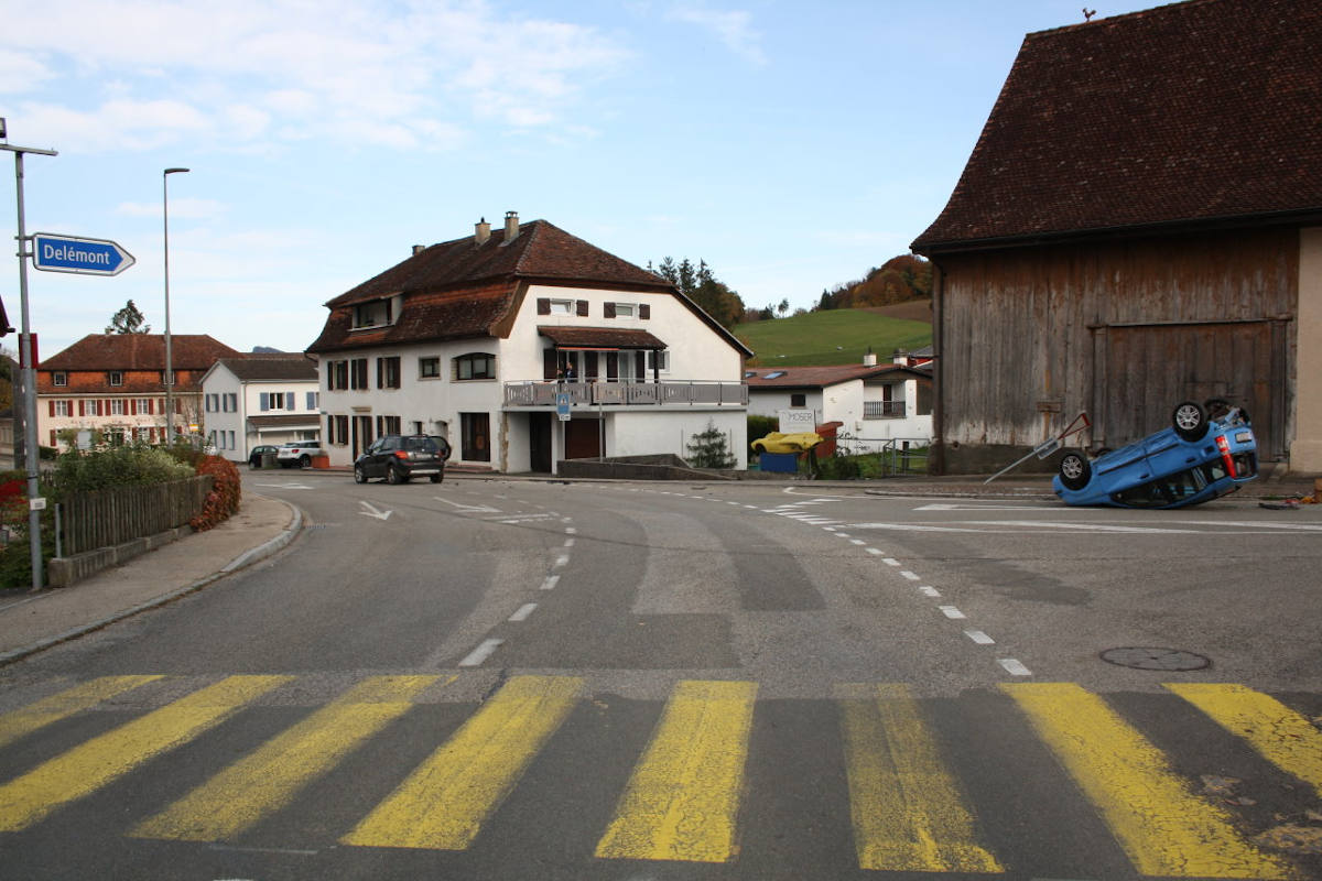 Verkehrsunfall mit Personenschaden in Develier (Bildquelle: Kantonspolizei Jura)