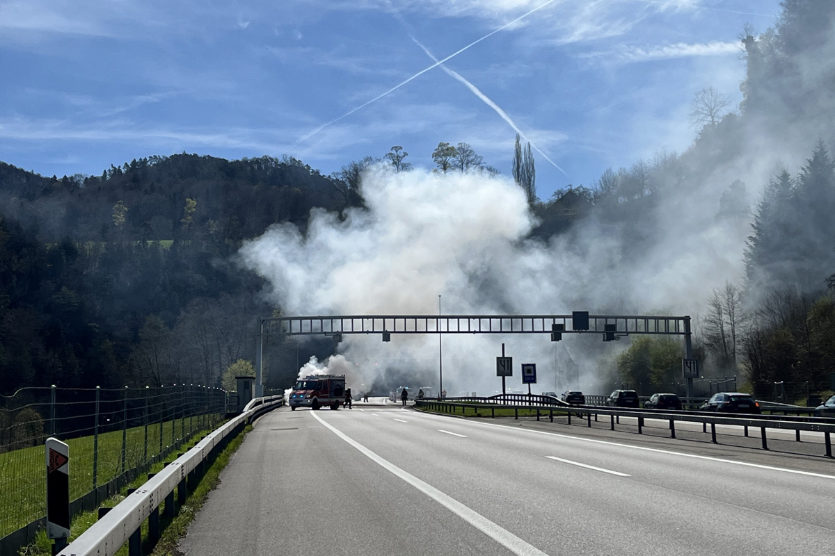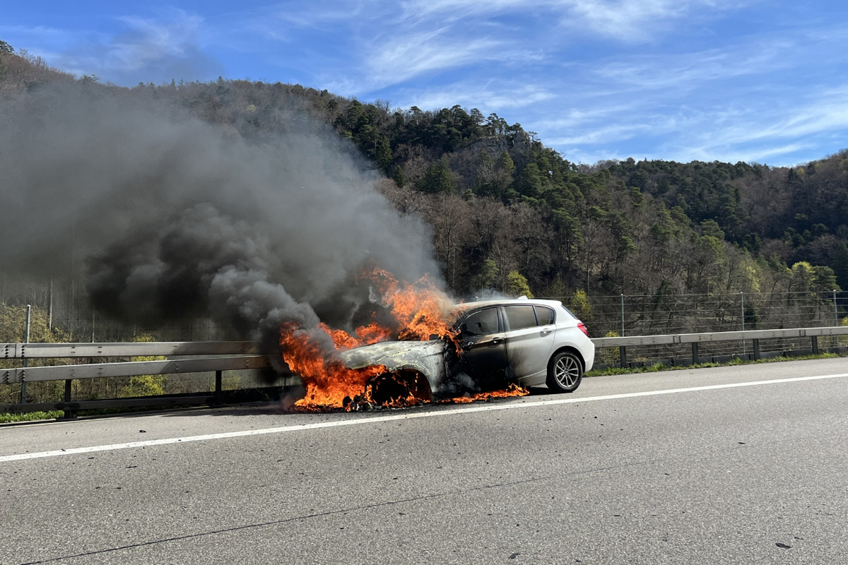 Am Sonntagmittag, 05. April 2026, gegen 12.00 Uhr, kam es auf der Autobahn A2 bei Diegten BL, kurz nach dem Oberburgtunnel in Fahrtrichtung Basel, zu einem Personenwagenbrand. Personen wurden nicht verletzt.