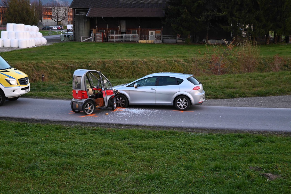 Am Dienstag (09.11.2021), um 16:10 Uhr, ist es auf der Dammstrasse zu einem Unfall zwischen einem Auto und einem Elektromobil gekommen. Der 90-jährige Elektromobilfahrer verletzte sich dabei leicht und musste ins Spital gebracht werden.